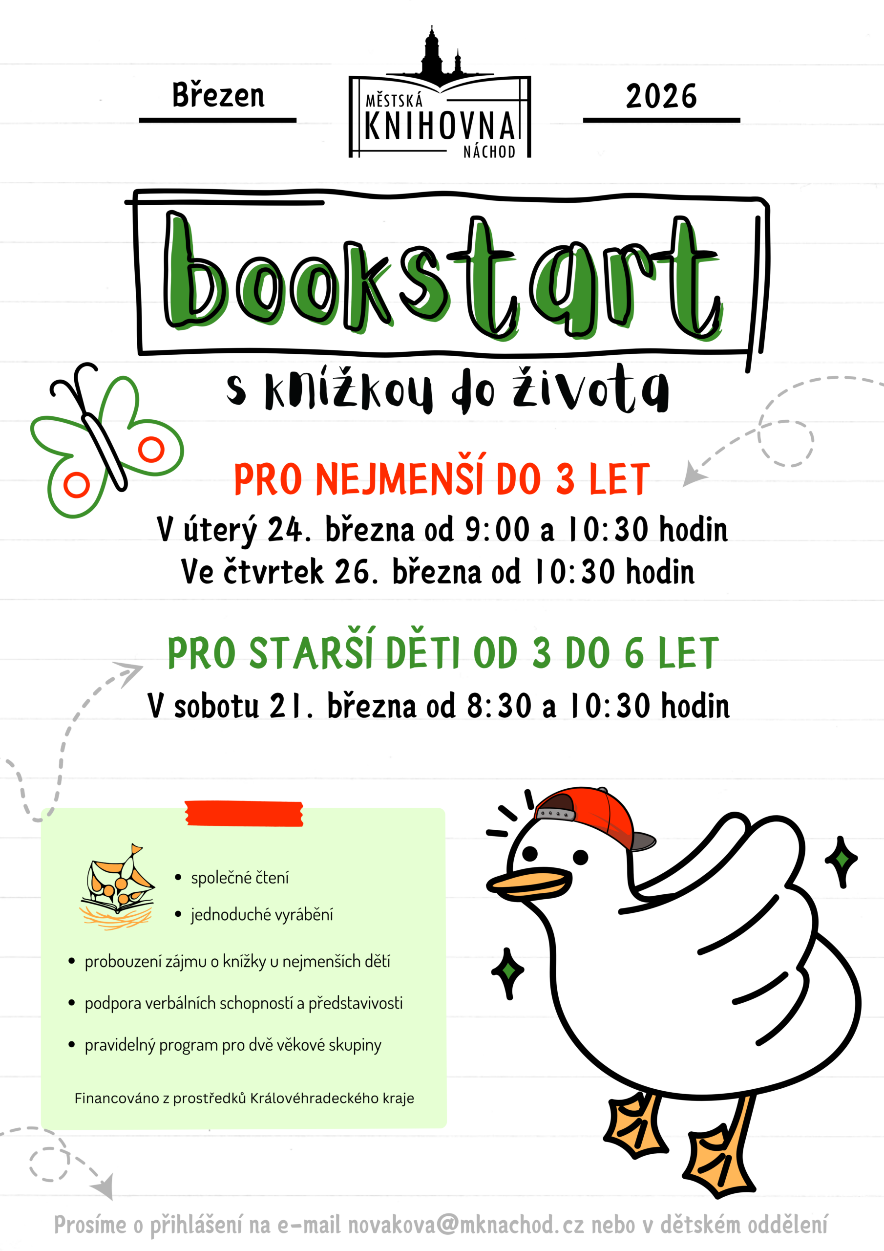 Prosíme o přihlášení na e-mail novakova@mknachod.cz nebo v dětském oddělení.