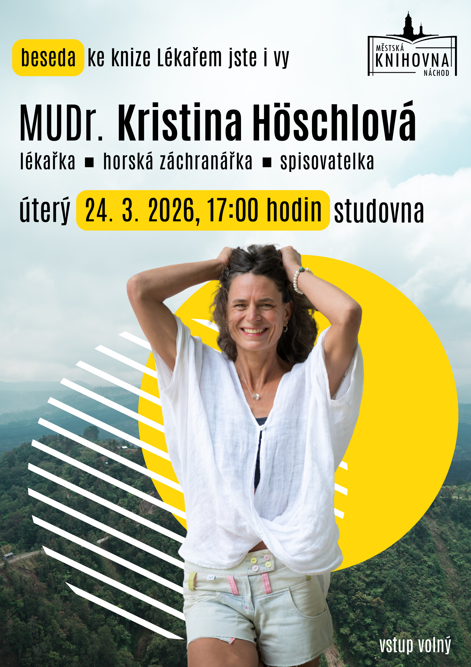 V úterý 24. března vás od 17:00 hodin zveme do studovny na besedu s lékařkou a horskou záchranářkou Kristinou Höschlovou. Povídat si budeme především o její nové knize Lékařem jste i vy, v níž popisuje, jak využívat přirozené léčebné nástroje přírody i vlastní mysli pro udržení fyzického a duševního zdraví.